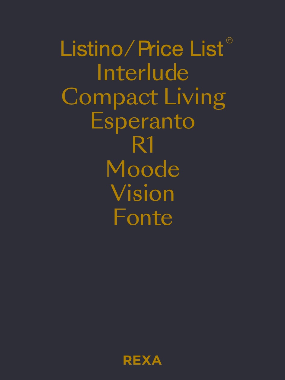 Rexa interlude l 40-60-70-80-90-100-120 p 36-46-53 h 25-40-50-65-85 compact living l 30-40-60-70-80-90-100-120 p 36-46-53 h 25-40-50 esperanto l 50-70-90-120 p48 h 25-50 r1 l 40-60-70-80-90-100-120 p 36-46-53 h 25-40-50-80 moode l 40-60-70-80-90-100-120 p 46-53 h 25-40-50-80 vision l 30-40-60-80 p18 h 60-90-120-150-180-210-240 fonte l 80 / 96-144 p48 h50/40