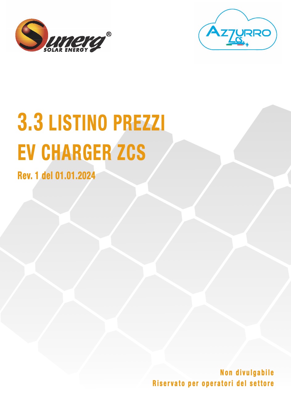 Sunerg listino prezzi ev charger zcs - rev. 1 del 01.01.2024 - cod. 129