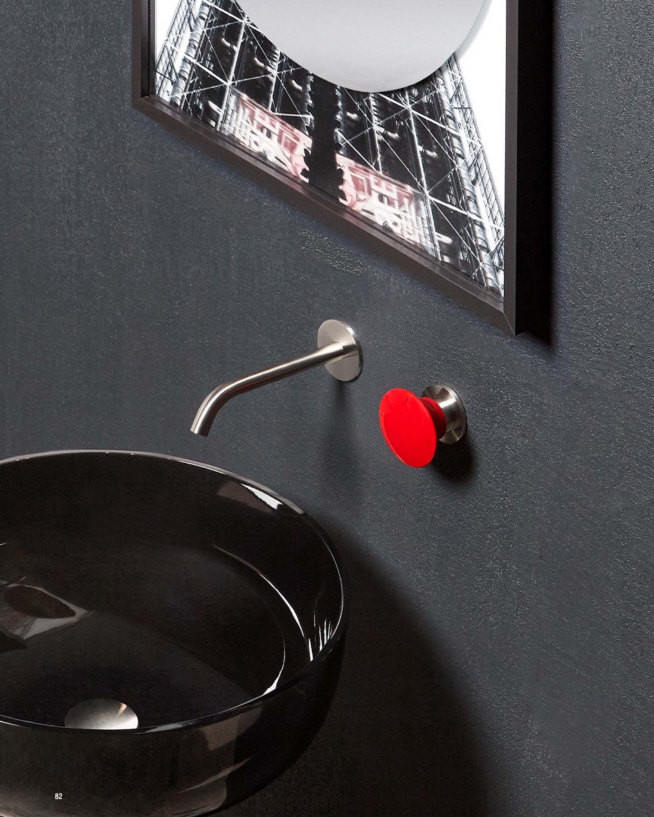 Antonio Lupi ironic and funny image taken from its big brother, the out rightness of the gesture, the ability to give joy and color to the shower space even with smaller dimensions. the external knob of minimayday has in fact a diameter of two centimeters less than that of mayday (6 cm against 8 cm) but retains intact the characteristics of the original design. a single-lever wall-mounted mixer suitable for multiple usage, sink faucet, showerhead, hand shower, which arises from the overturning of the meaning to transform an emergency button into a command handle used every day, as the name underlines. the smart mode of operation remains unchanged. the water opens thanks to an axial movement, not as you would expect by pressing the button but by pulling it towards us. the mixing of the water jet is done by turning the button to the right and left while, to close the jet, just press the button. like mayday, minimayday offers a satin stainless steel finish with coordinated knob, or in graphite,