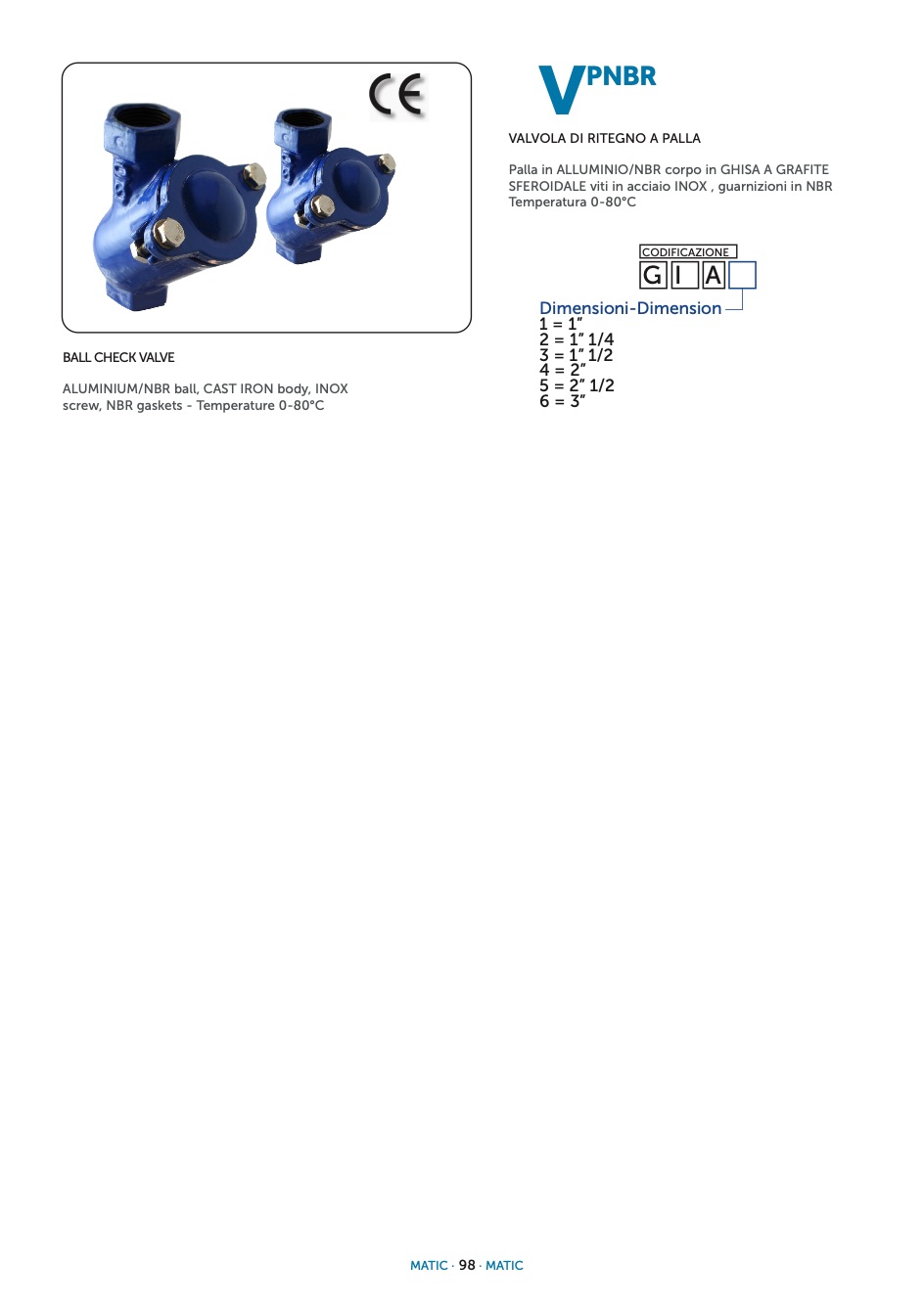 Matic valvola di ritegno a palla palla in alluminio/nbr corpo in ghisa a grafite sferoidale viti in acciaio inox , guarnizioni in nbr temperatura 0-80°c