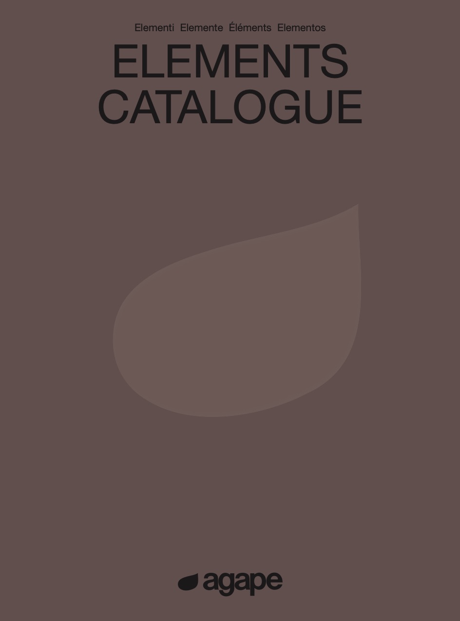 Agape agape elements agape elements è il catalogo generale dei prodotti agape. è una tassonomia sapientemente organizzata di tutto ciò che produciamo. comprende 127 prodotti ordinati alfabeticamente e e divisi in tipologie in 11 categorie che coinvolgono tutti i sensi e coprono ogni esigenza funzionale dell’ambiente bagno. crediamo fermamente che fare architettura è stabilire relazioni. spesso nati da esigenze progettuali specifiche, i prodotti nel nostro catalogo sono capaci di stabilire un dialogo intenso tra di loro e con lo spazio che li accoglie. in agape elements, abbiamo evidenziato e portato in superficie molte delle relazioni che collegano i nostri elementi rendendo la nostra gamma così unica. rimanendo entro i limiti rigidi di una pubblicazione cartacea, abbiamo fatto di tutto per rendere questo vasto vocabolario facile da navigare: illustrazioni, schemi, diagrammi e dettagli tecnici sono lì per aiutarvi a trovare il prodotto giusto per i vostri progetti. siamo infatti architetti nel cuore e agape, prima di tutto, è progetto. dal primo giorno abbiamo lavorato con architetti e designer per disegnare oggetti affinché diventino parte di un’architettura. come se fossero stati progettati dalla stessa, invisibile mano, gli elementi nel nostro catalogo sono facili da combinare sia esteticamente che per la loro geometria. i nostri prodotti sfuggono lo spirito del tempo e le mode passeggere, per offrire soluzioni che durano nel tempo grazie alla qualità dei materiali e alla loro aderenza a principi di buon design che non passeranno mai di moda. agape elements è un vocabolario attentamente curato dell’architettura del bagno. molto più della somma delle sue parti, esso è lo strumento fondamentale per aiutarvi a disegnare soluzioni complete, one-stop per quello che rimane ancora oggi la parte più intima del paesaggio domestico contemporaneo.