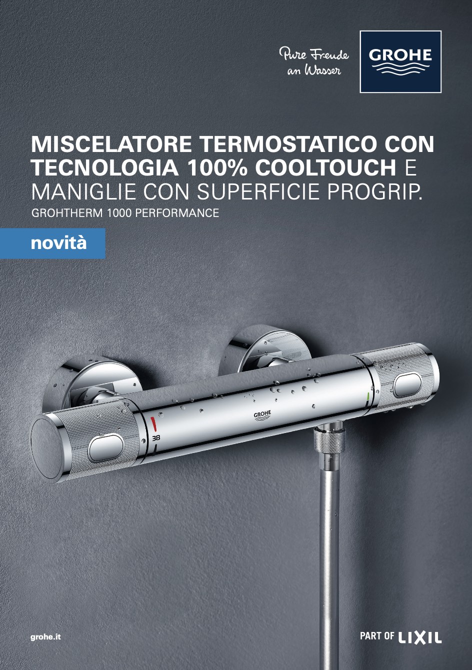 Grohe grohtherm 1000performance miscelatoretermostaticocontecnologia cooltouchemaniglieconsuperficieprogrip.