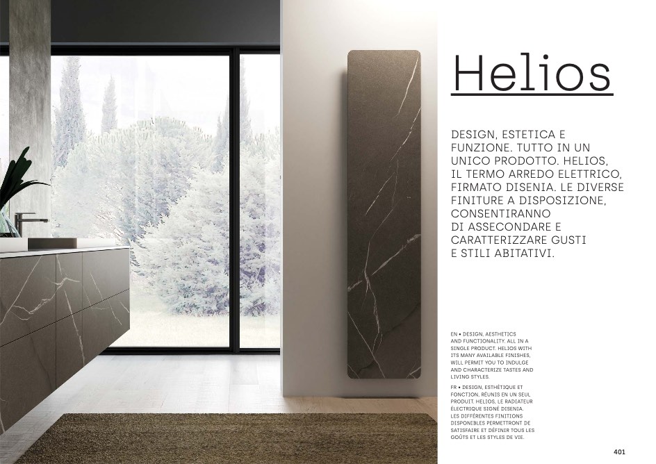 Disenia design, estetica e funzione. tutto in un unico prodotto. helios, il termo arredo elettrico, firmato disenia. le diverse finiture a disposizione, consentiranno di assecondare e caratterizzare gusti e stili abitativi.