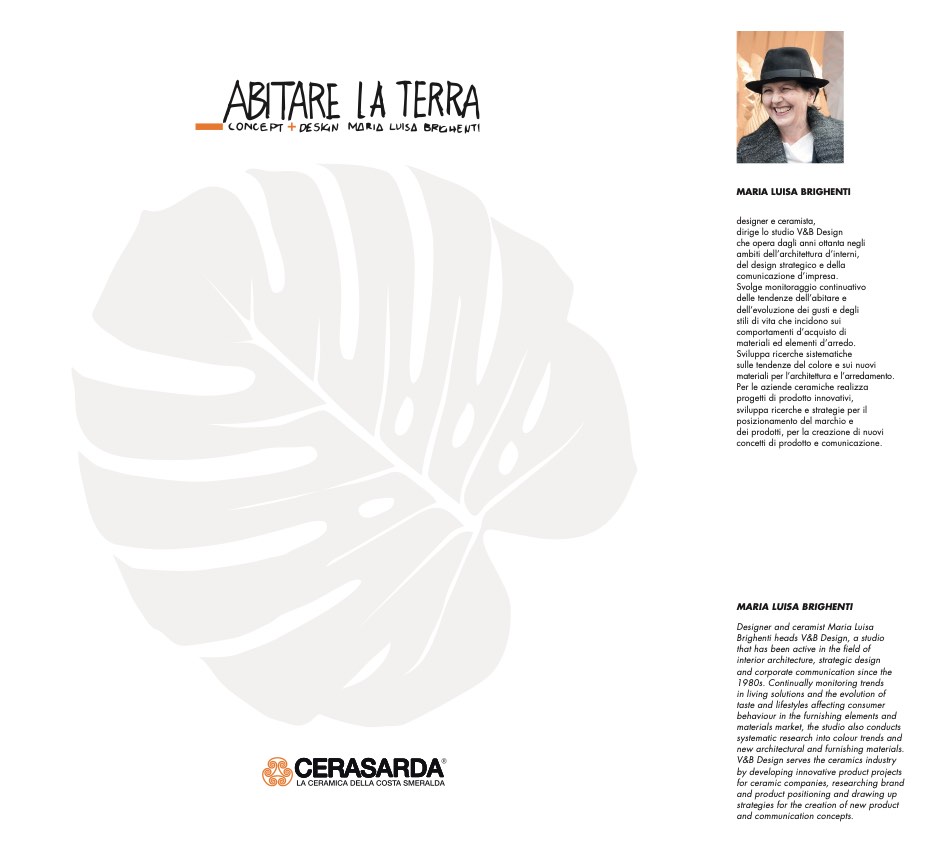 Cerasarda inaugura la sezione cerasarda design abitare la terra, un progetto di prodotto innovativo di maria luisa brighenti, designer e ceramista. questo progetto trae ispirazione dalla terra calda, ricca e generosa di sardegna, e dà vita a una collezione inedita caratterizzata da una grande matericità, da tonalità cromatiche armoniche arricchite da una gamma di colori a contrasto accento e da strutture decorative esclusive. un materiale ceramico originale, che coniuga il sapere artigiano _ l’”hand made” dell’autrice si inserisce perfettamente nella tradizione cerasarda _ con le tecnologie d’avanguardia del gruppo romani. sviluppata in numerosi formati modulari, questa collezione consente una infinità di soluzioni d’uso per pavimenti e rivestimenti. abitare la terra si propone di soddisfare le esigenze di un mercato internazionale rappresentato da progettisti, designers, architetti d’interni e utilizzatori privati esigenti che ricercano materiali autentici per un abitare contemporaneo.