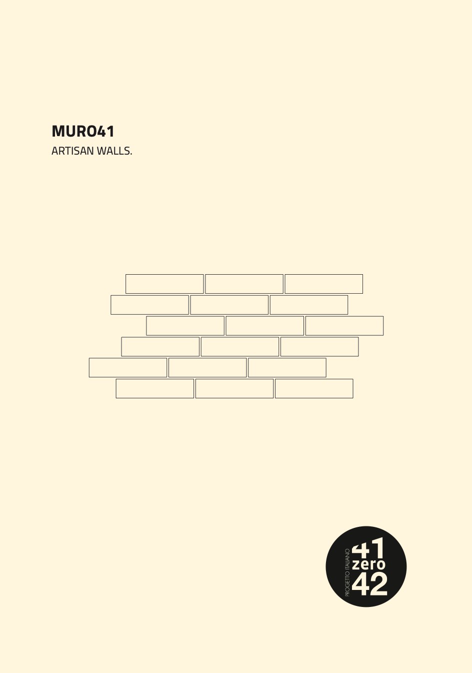 41zero42 ricerca e artigianalità€, due concetti apparentemente opposti che animano la serie muro41. gres porcellanato a tutta massa, ottenuto attraverso il processo di estrusione, che rende ogni singolo pezzo di muro41 unico e dissimile dagli altri. la superficie , caratterizzata da movimenti irregolari ma al contempo sottili e delicati,viene contraddistinta da particolari giochi di luce e di ombra, che quasi impercettibilmente ne destabilizzano la linearità€. research and artisanal craftsmanship, usually perceived as two opposite concepts, are the foundation of the muro41 collection. porcelain full body obtained by the process of extrusion is what makes each piece of this collection unique, as you will be able to witness, when compared to one another.the irregular surface combined with particular stokes of light and shadows create ruff movements yet subtle and delicate for you to appreciate this irregular surface.