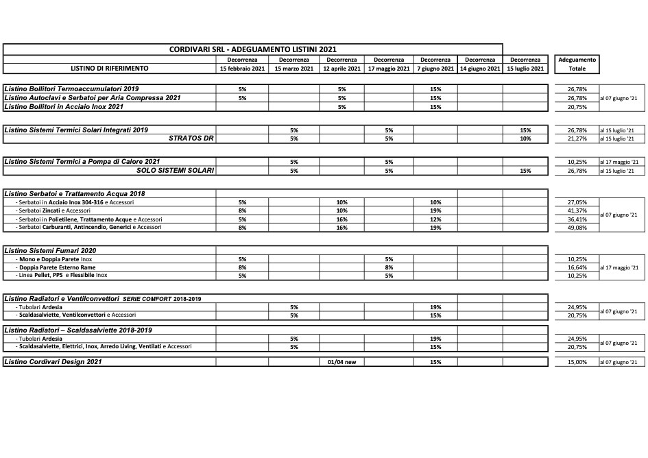 Cordivari cordivari srl ‐ adeguamento listini 2021