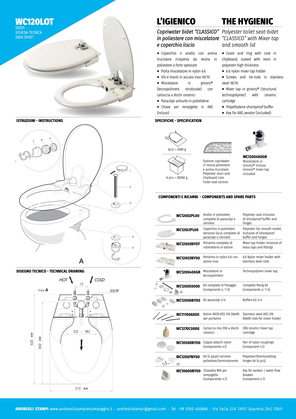 Andreoli Stampi scheda tecnica art. 120l e 320tsezione copriwater