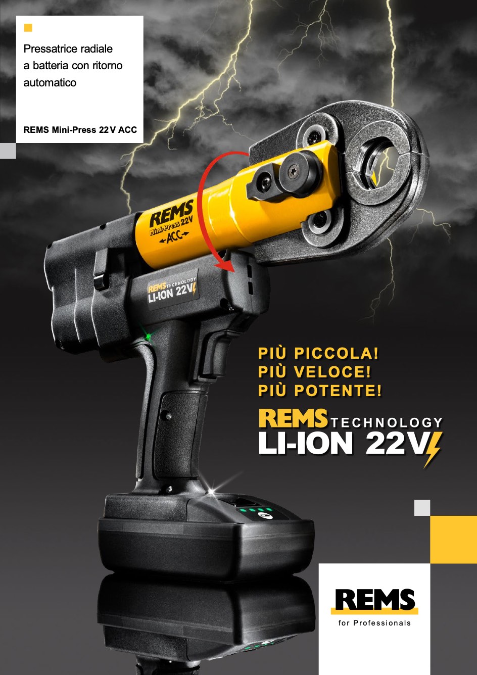Rems rems mini-press 22v acc – universale fino a ø 40 mm. leggerissima, piccolissima, maneggevole, superveloce.