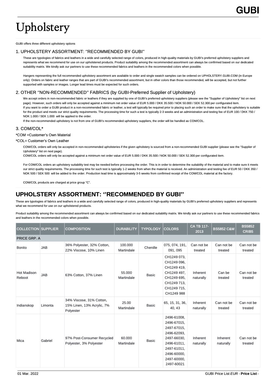 Gubi upholstery assortment: ‘’recommended by gubi’’