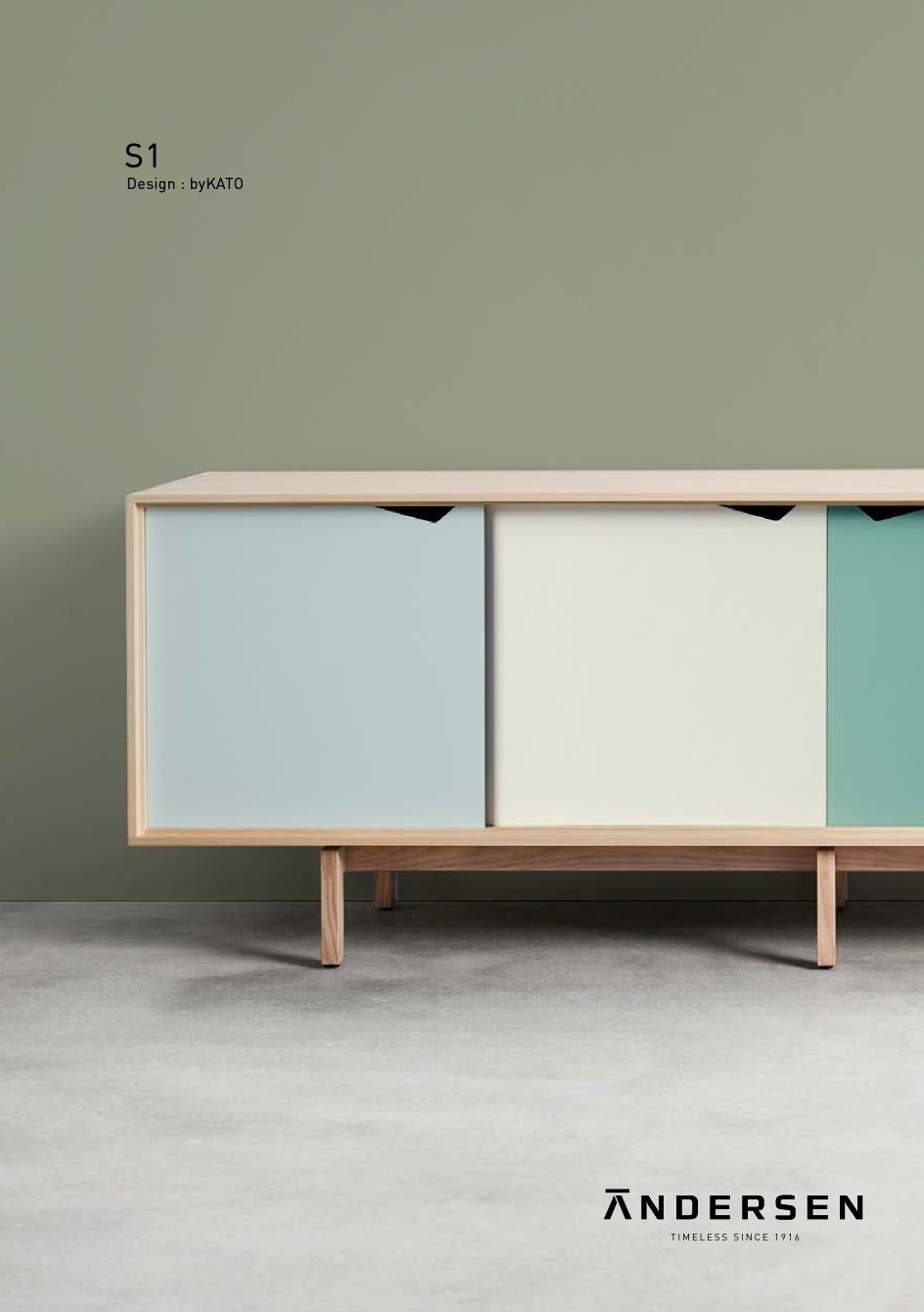 Andersen with its modern design, the s1 re-interprets the clas- sic sideboard and gives you a piece of furniture with abundant potential for creating your own personal statement, and your own design. choose between oak, ash or walnut for the body. add shelves in lam- inate and drawers in solid wood. doors come in nine different colours. the base, body and drawers are elegantly crafted with visible dowel joints, and both doors and drawers can be installed without the use of tools so that you can easily design your s1 to suit your own taste and temperament. the drawers can also be used as trays. practical and thoroughly elegant.
