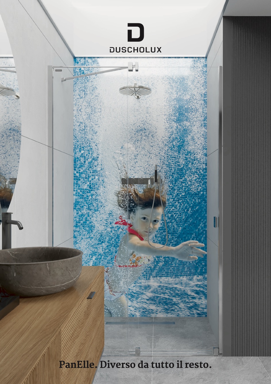 Duscholux i propri motivi personali ad alta risoluzione trasformano gli spazi in configurazioni dei bagni uniche.
