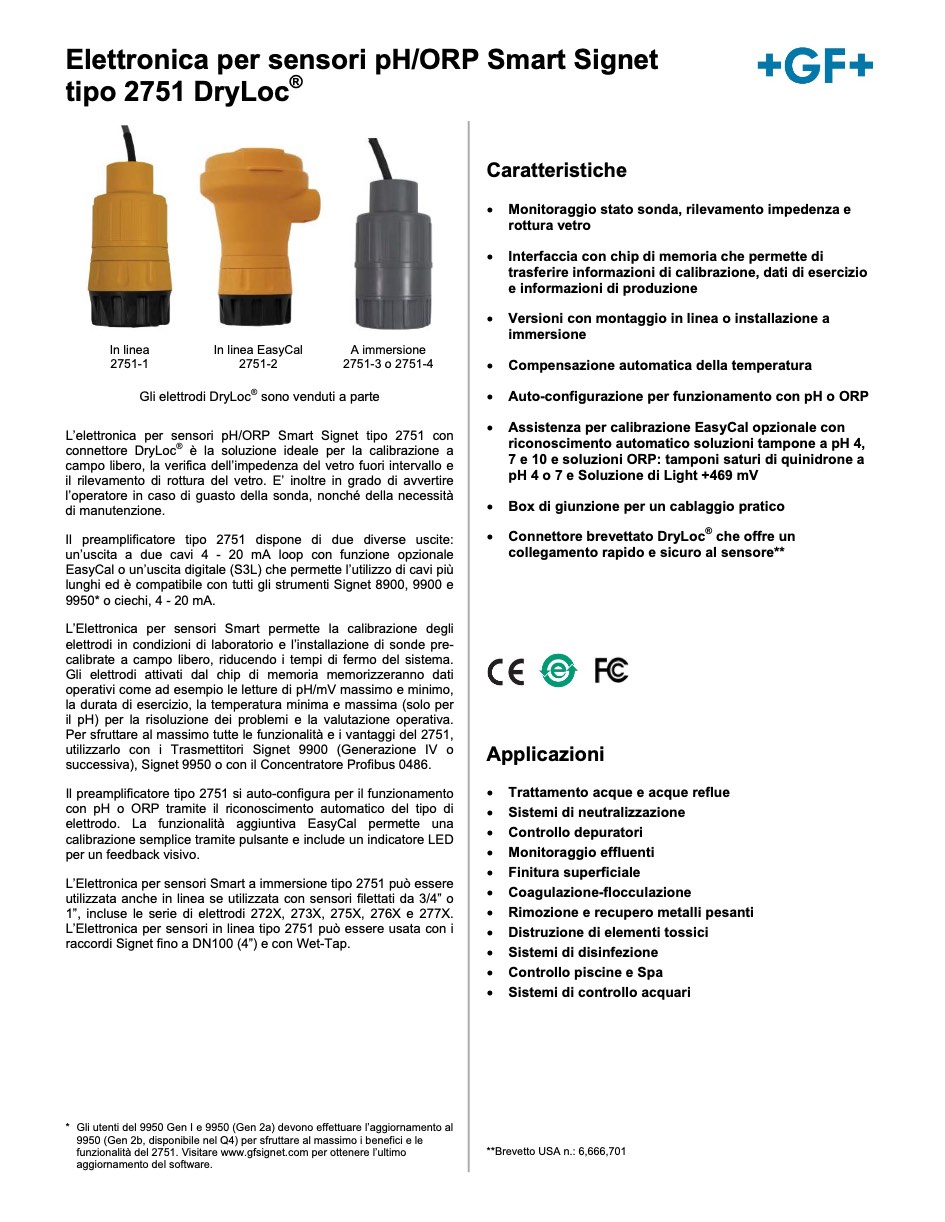 Georg Fischer elettronica per sensori ph/orp smart signet tipo 2751 dryloc