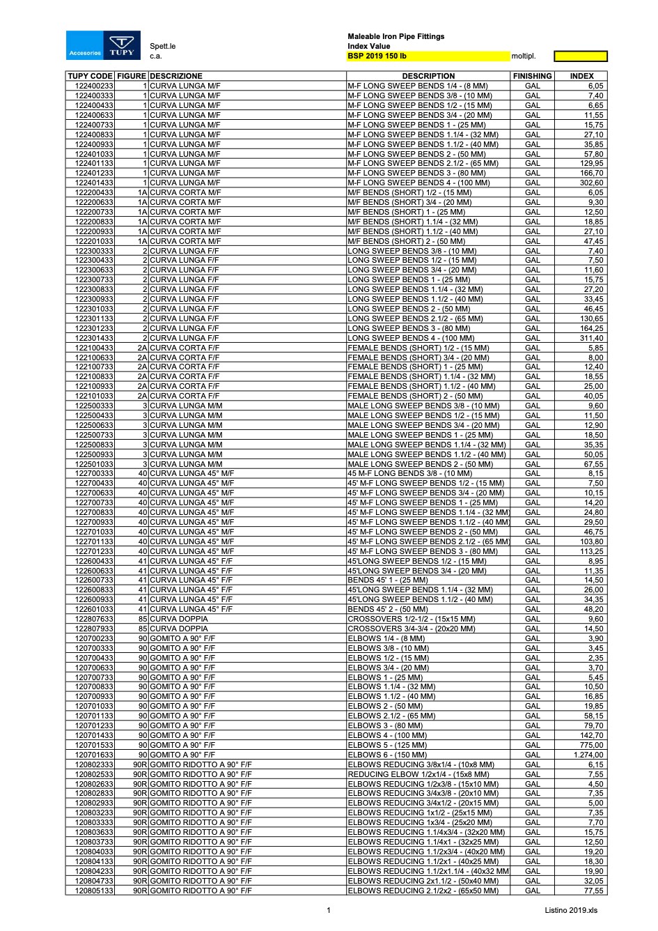 Listino prezzi Jannone Ferro Tubi Raccordi Ghisa