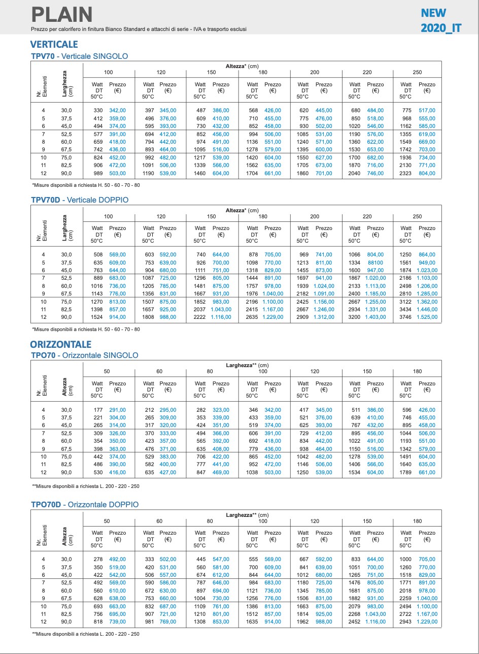 Listino prezzi Tubes Plain