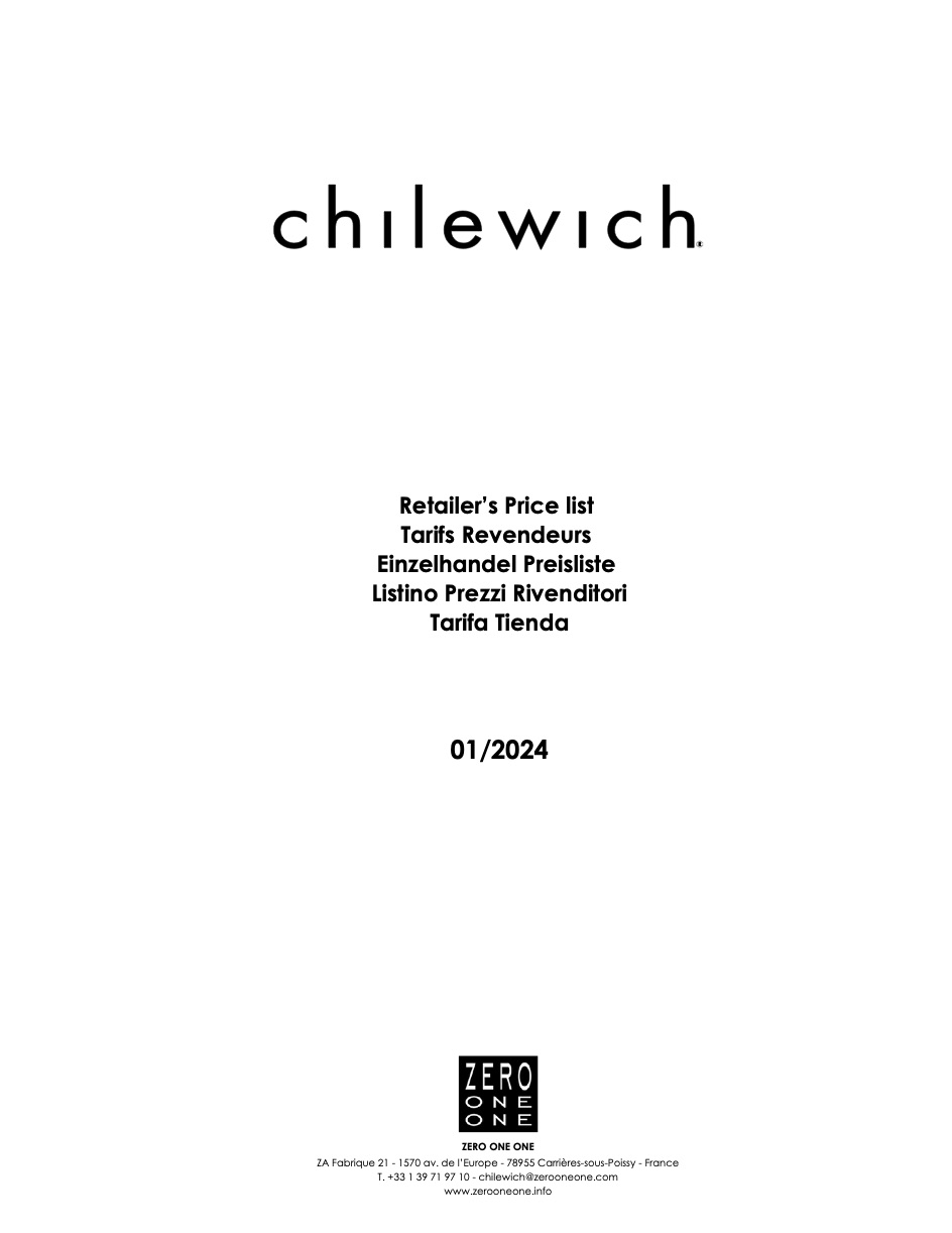 Listino prezzi Zero One One 01/2024