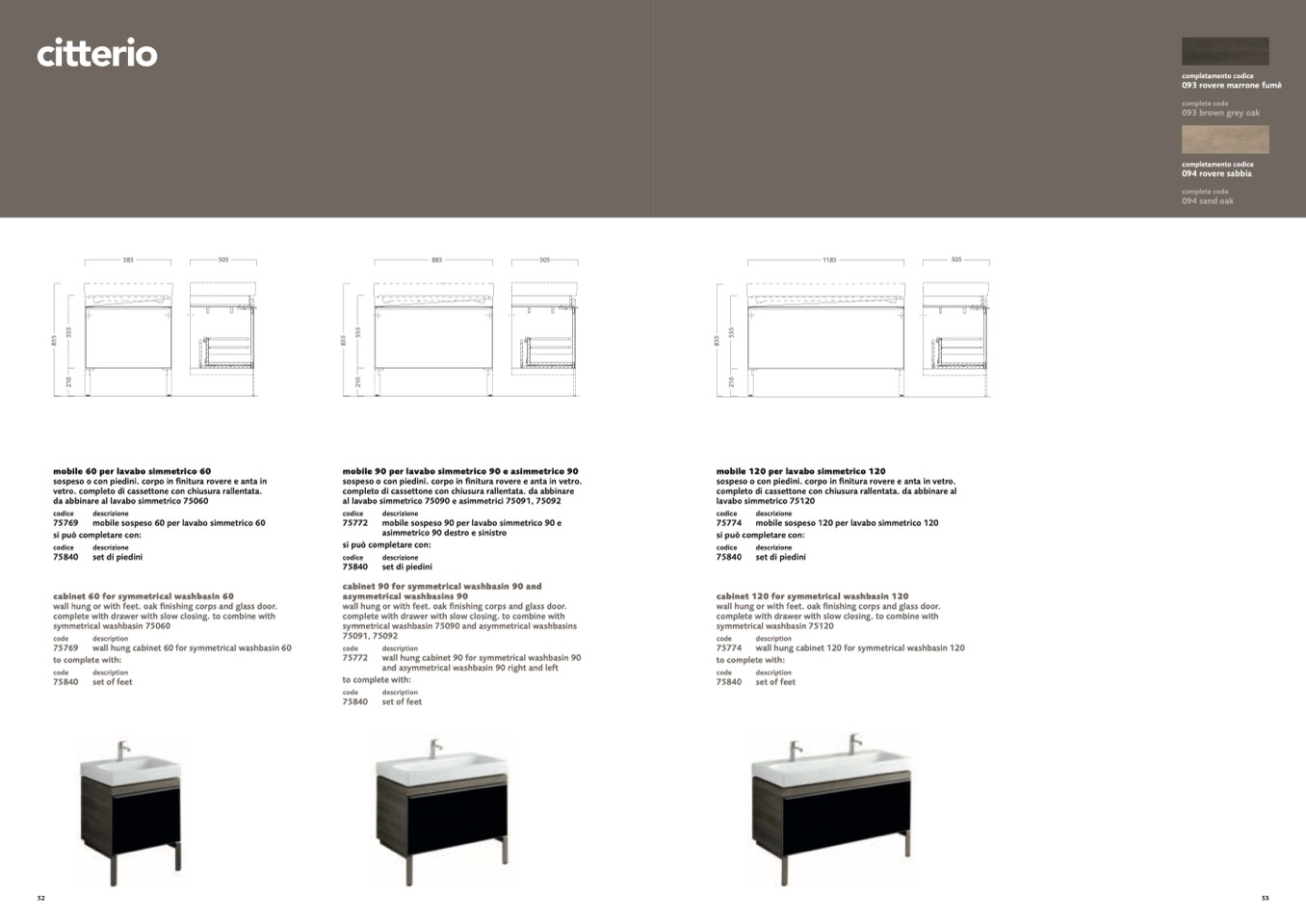 al lavabo simmetrico 75090 e asimmetrici 75091, 75092
