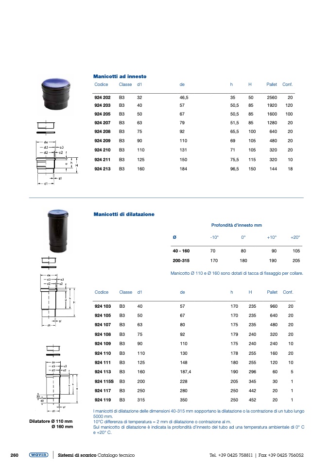 Manicotto Ø 110 e Ø 160 sono dotati di tacca di fissaggio per collare.
