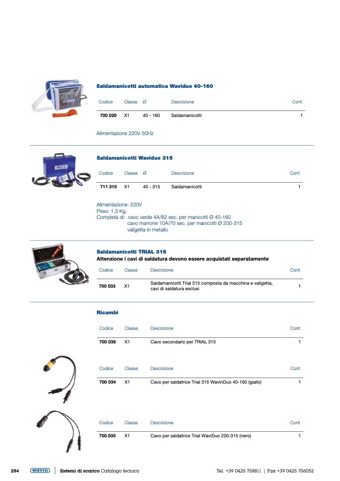 Completa di: cavo verde 4A/82 sec. per manicotti Ø 40-160