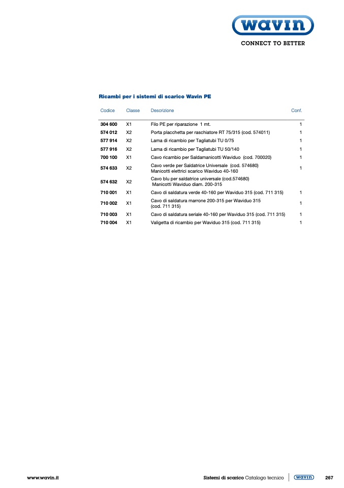 Ricambi per i sistemi di scarico Wavin PE