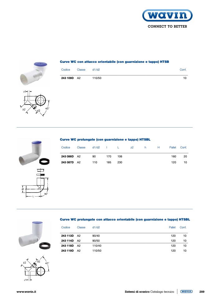 Curve WC prolungate (con guarnizione e tappo) HTSBL