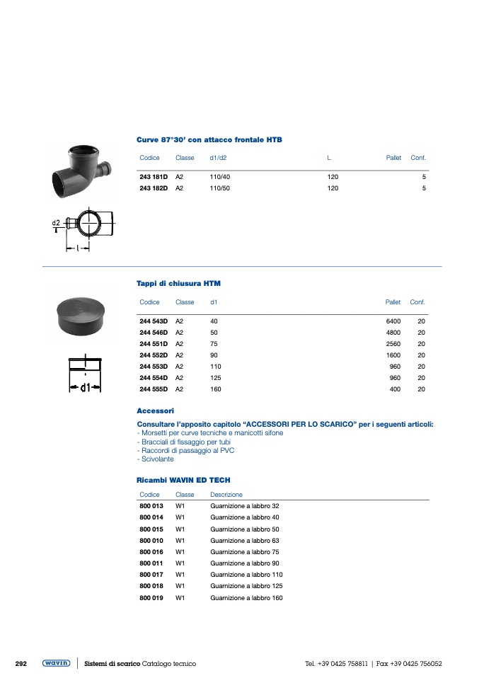 Consultare l’apposito capitolo “ACCESSORI PER LO SCARICO” per i seguenti articoli: