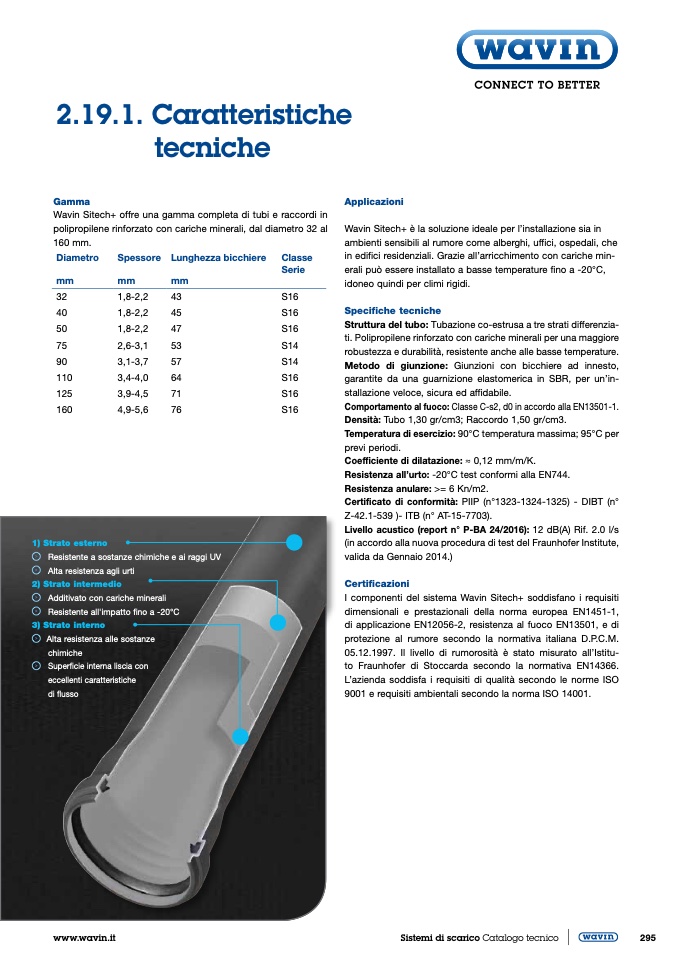 I componenti del sistema Wavin Sitech+ soddisfano i requisiti