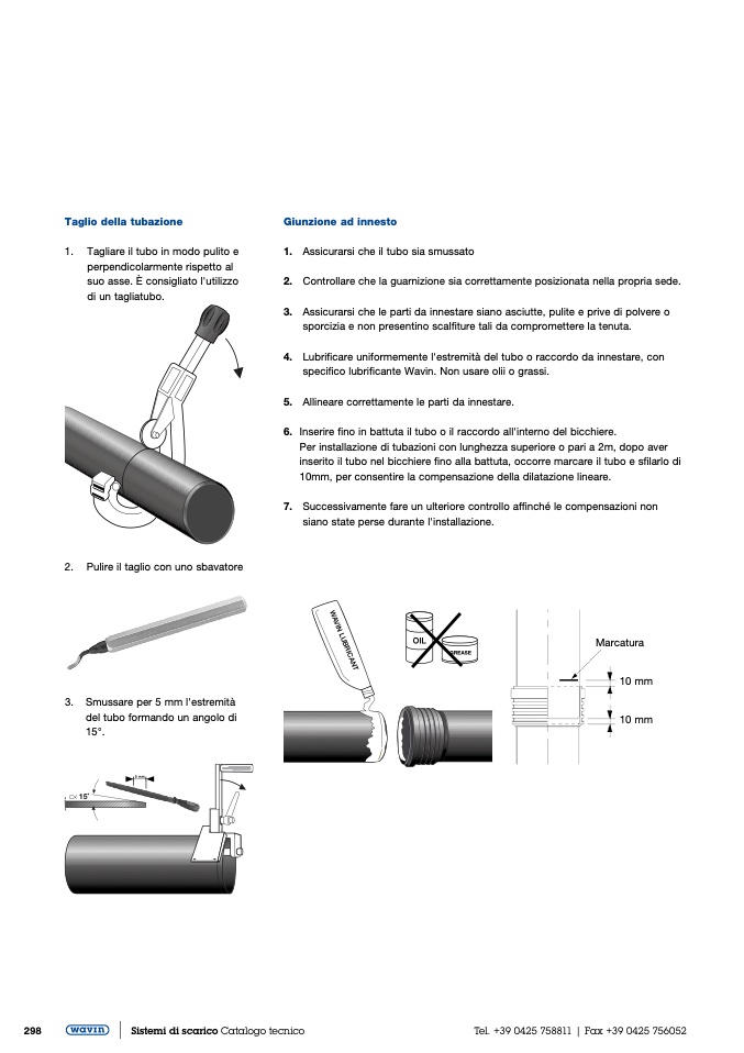 specifico lubrificante Wavin. Non usare olii o grassi.