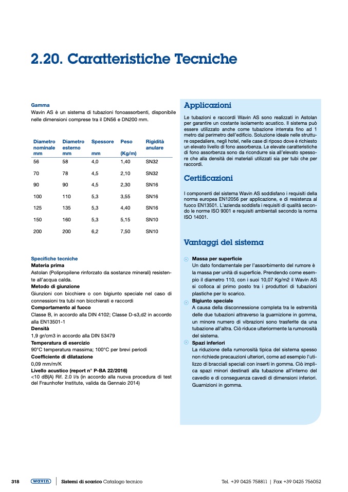 I componenti del sistema Wavin AS soddisfano i requisiti della