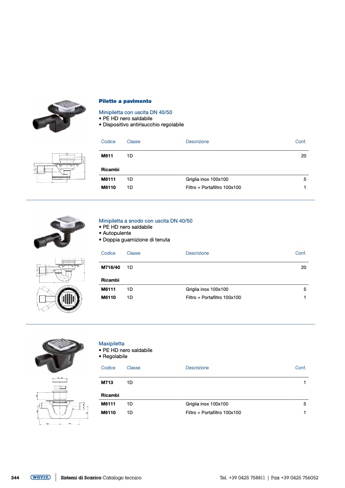 Minipiletta con uscita DN 40/50
