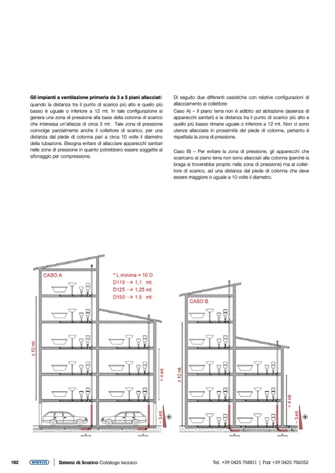 apparecchi sanitari) e la distanza tra il punto di scarico più alto e