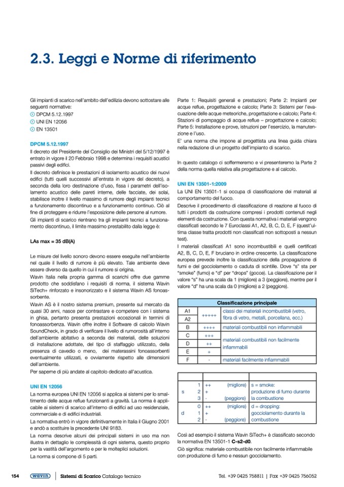 classificati secondo le 7 Euroclassi A1, A2, B, C, D, E, F (quest’ul-