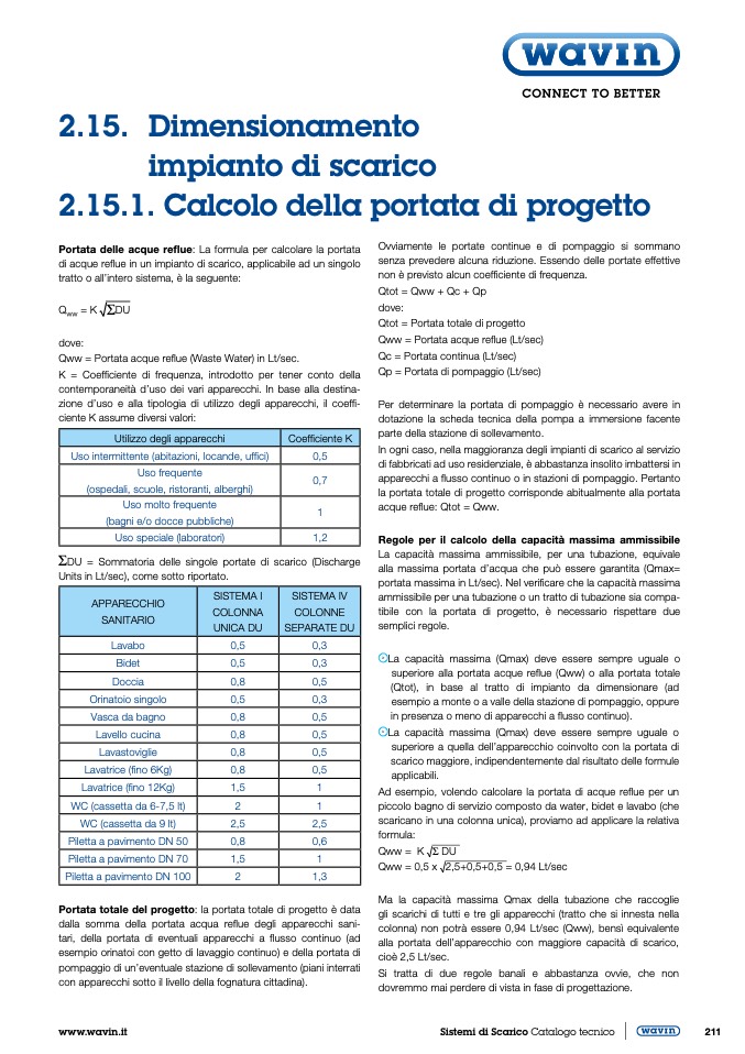 DU = Sommatoria delle singole portate di scarico (Discharge
