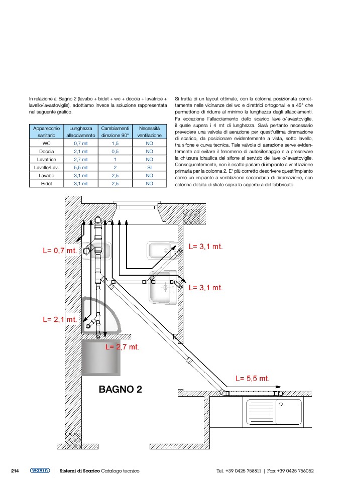 tamente nelle vicinanze del wc e direttrici ortogonali e a 45° che