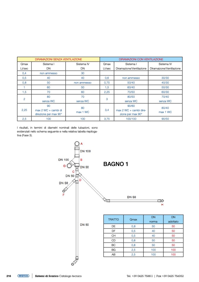 I risultati, in termini di diametri nominali delle tubazioni, sono