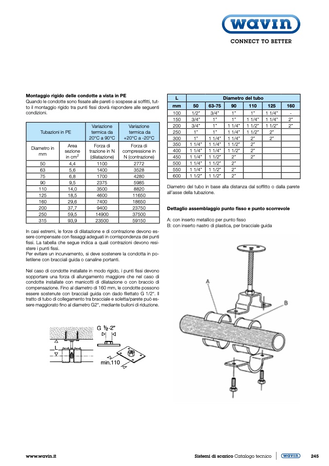 compensazione. Fino al diametro di 160 mm, le condotte possono
