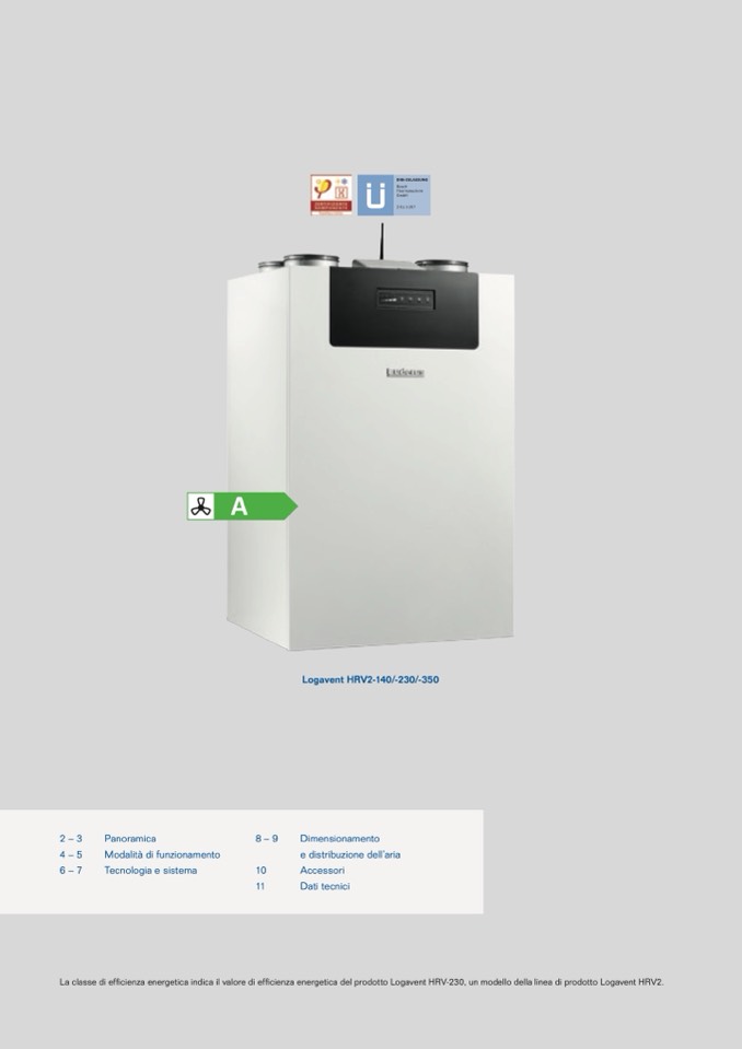La classe di efficienza energetica indica il valore di efficienza energetica del prodotto Logavent HRV-230, un modello della linea di prodotto Logavent HRV2.