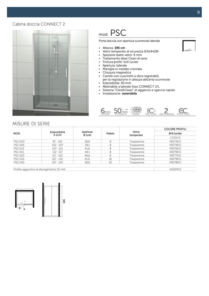 Porta doccia con apertura scorrevole laterale