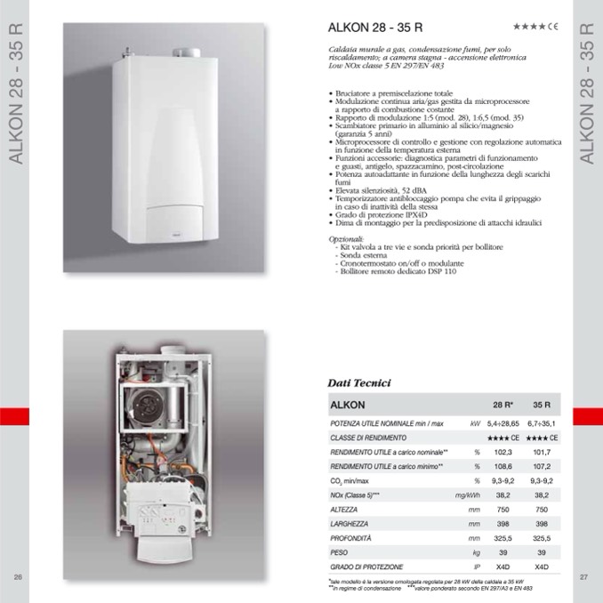 *tale modello è la versione omologata regolata per 28 kW della caldaia a 35 kW