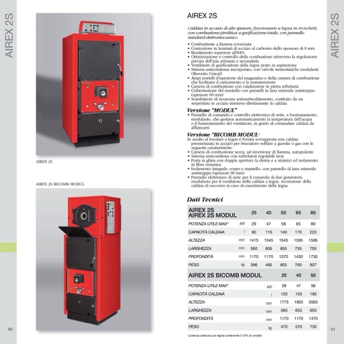 Caldaia in acciaio di alto spessore, funzionante a legna in tronchetti,