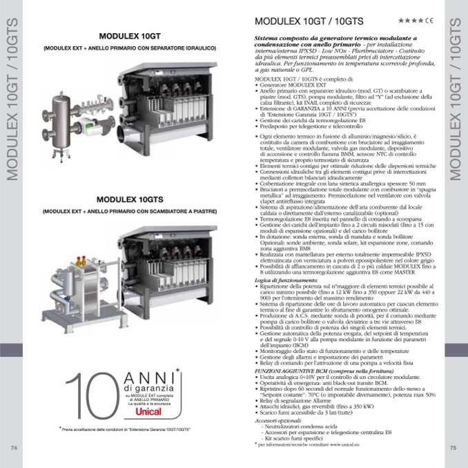 • Possibilità di affiancamento in cascata di 2 o più caldaie MODULEX fino a