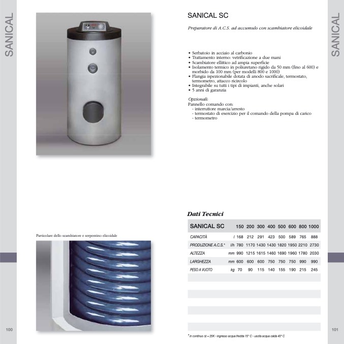 * in continuo Δt = 25K - ingresso acqua fredda 15° C - uscita acqua calda 40° C