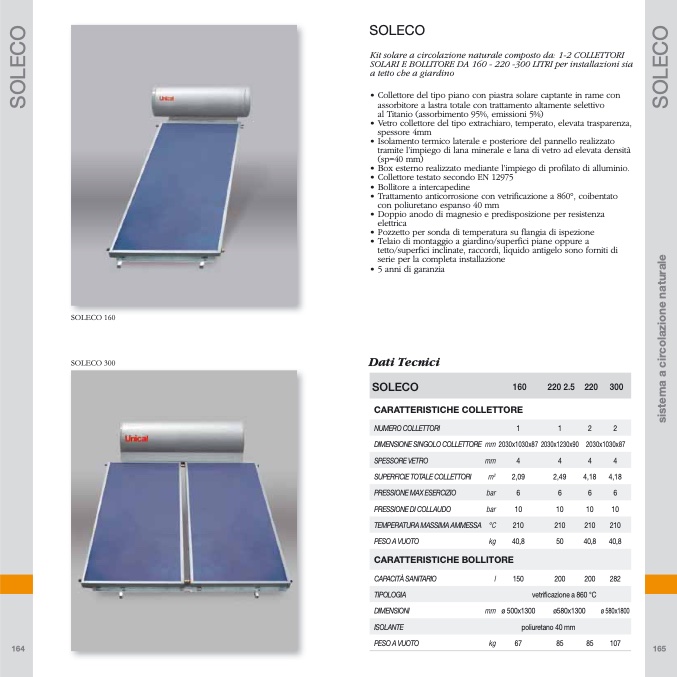 SOLARI E BOLLITORE DA 160 - 220 -300 LITRI per installazioni sia