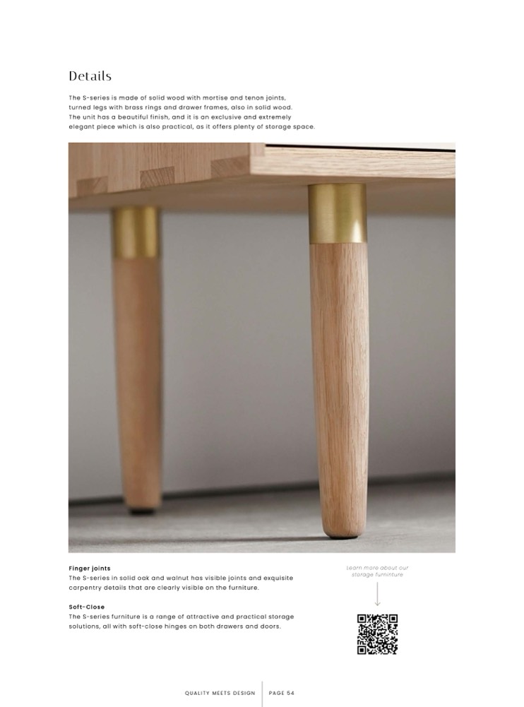 The S-series in solid oak and walnut has visible joints and exquisite