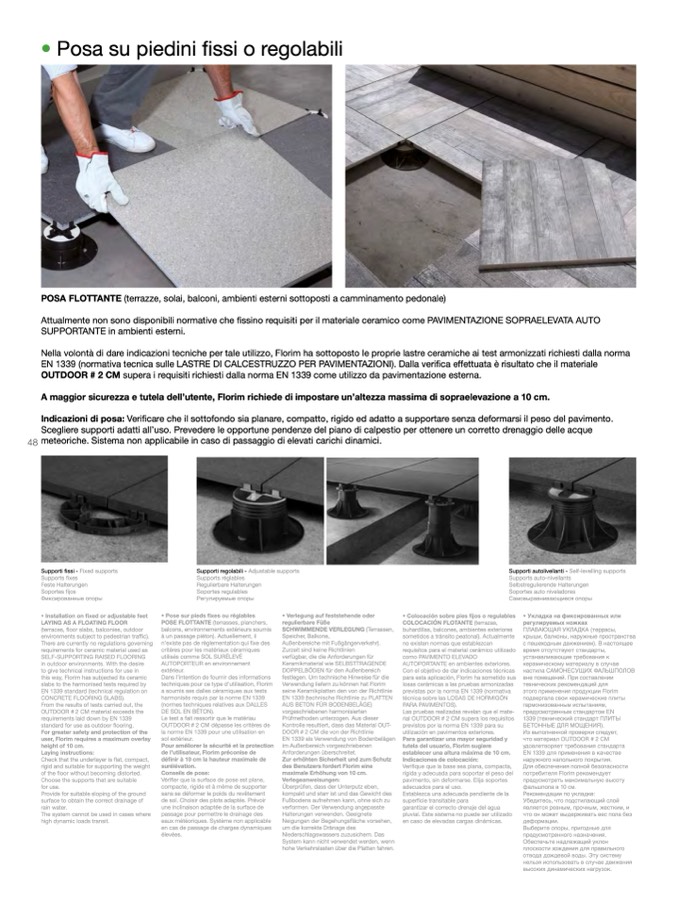 OUTDOOR # 2 CM supera i requisiti richiesti dalla norma EN 1339 come utilizzo da pavimentazione esterna.
