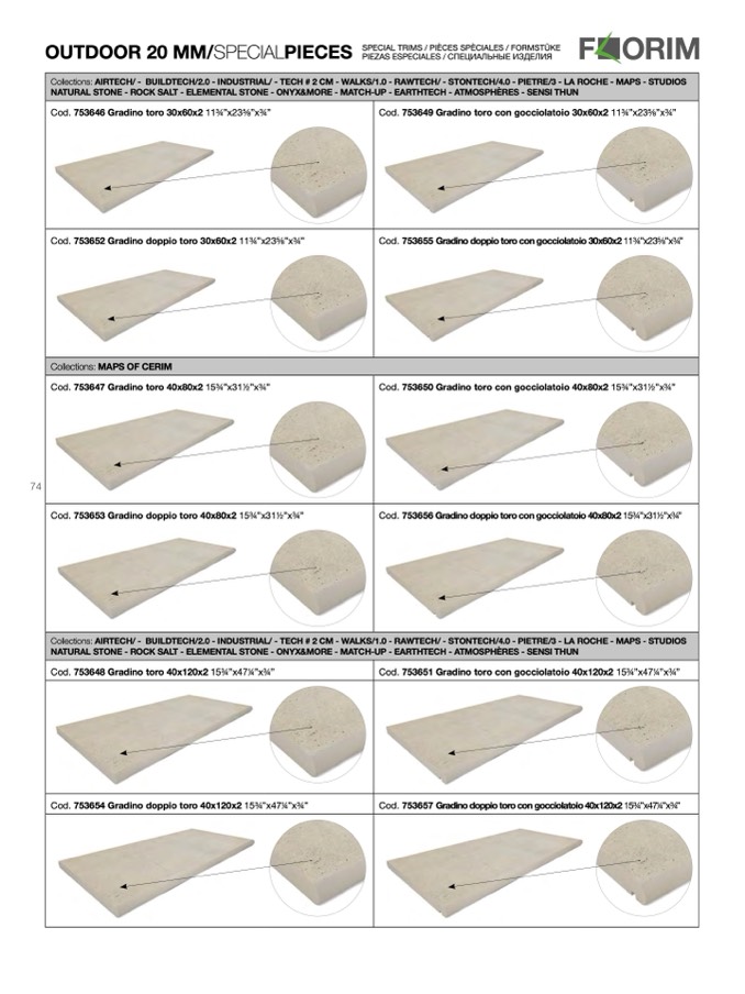 Cod. 753650 Gradino toro con gocciolatoio 40x80x2 15p”x312”xp””