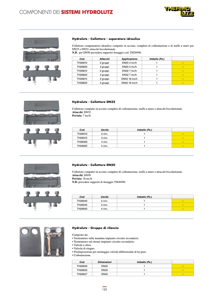 Collettore compatto in acciaio completo di coibentazione, staffe a muro e attacchi bocchettonati.