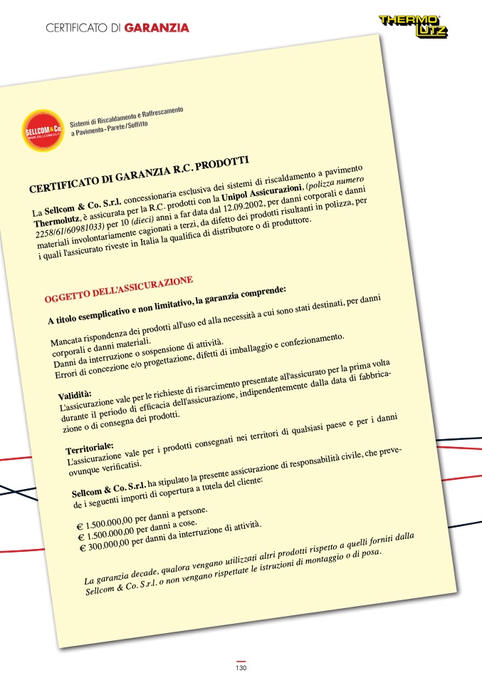 7KHUPROXW], è assicurata per la R.C. prodotti con la 8QLSRO$VVLFXUD]LRQL, (polizza numero