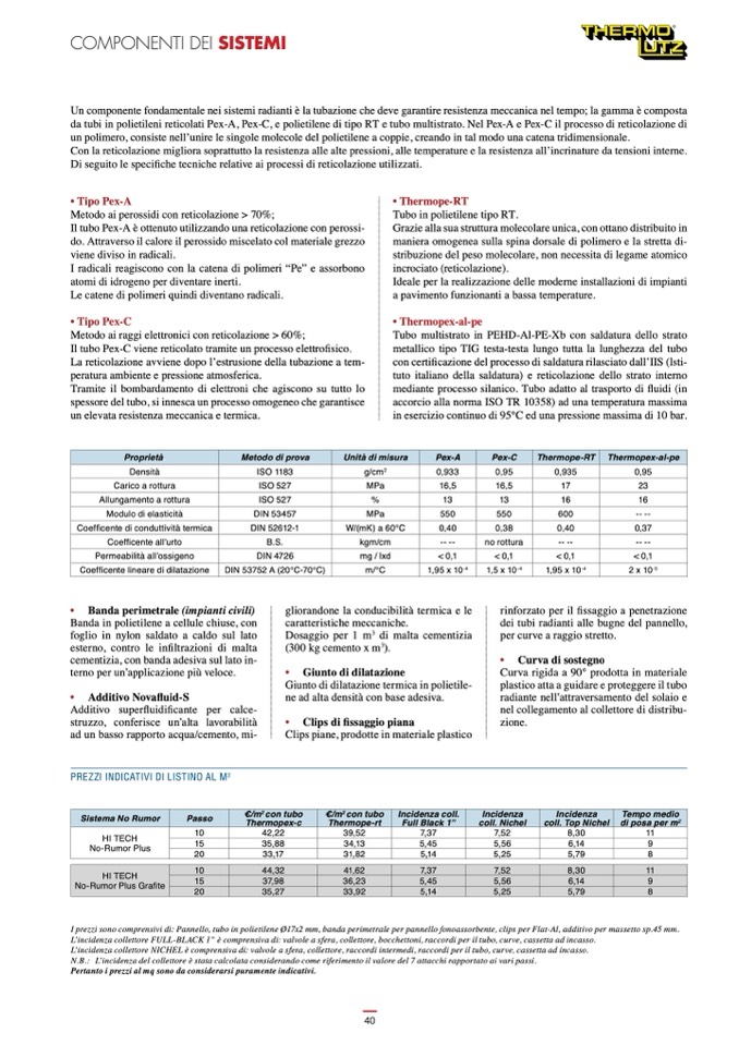 da tubi in polietileni reticolati Pex-A, Pex-C, e polietilene di tipo RT e tubo multistrato. Nel Pex-A e Pex-C il processo di reticolazione di