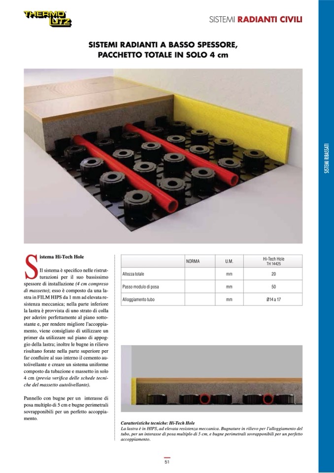 tubo, per un interasse di posa multiplo di 5 cm, e bugne perimetrali sovrapponibili per un perfetto