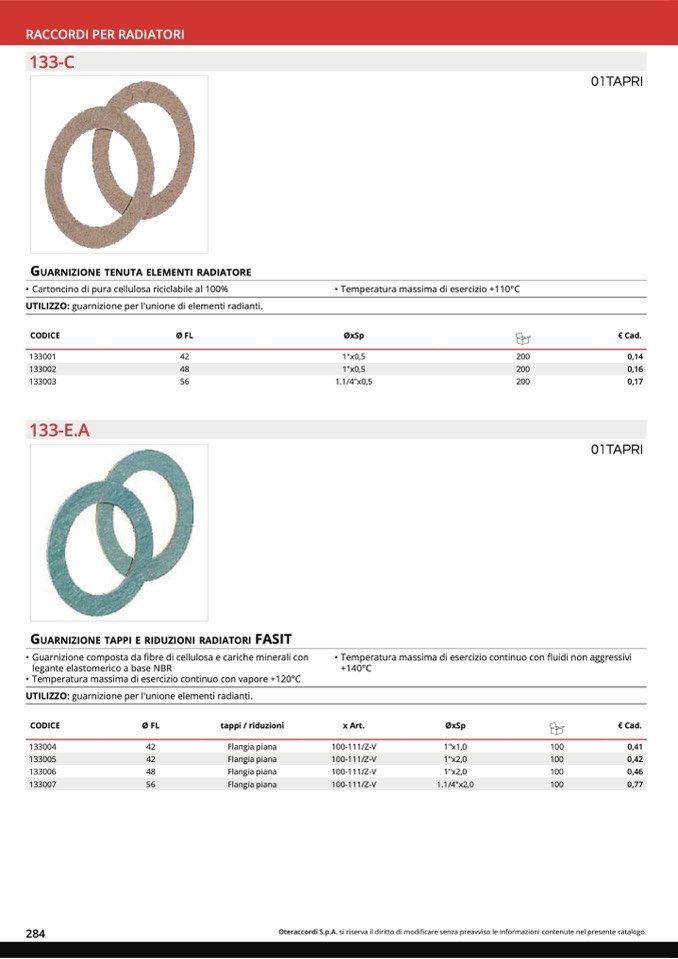 GUARNIZIONE TAPPI E RIDUZIONI RADIATORI FASIT